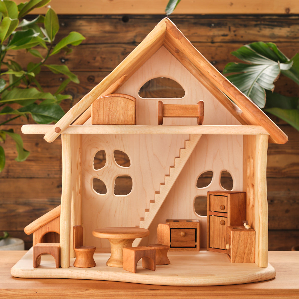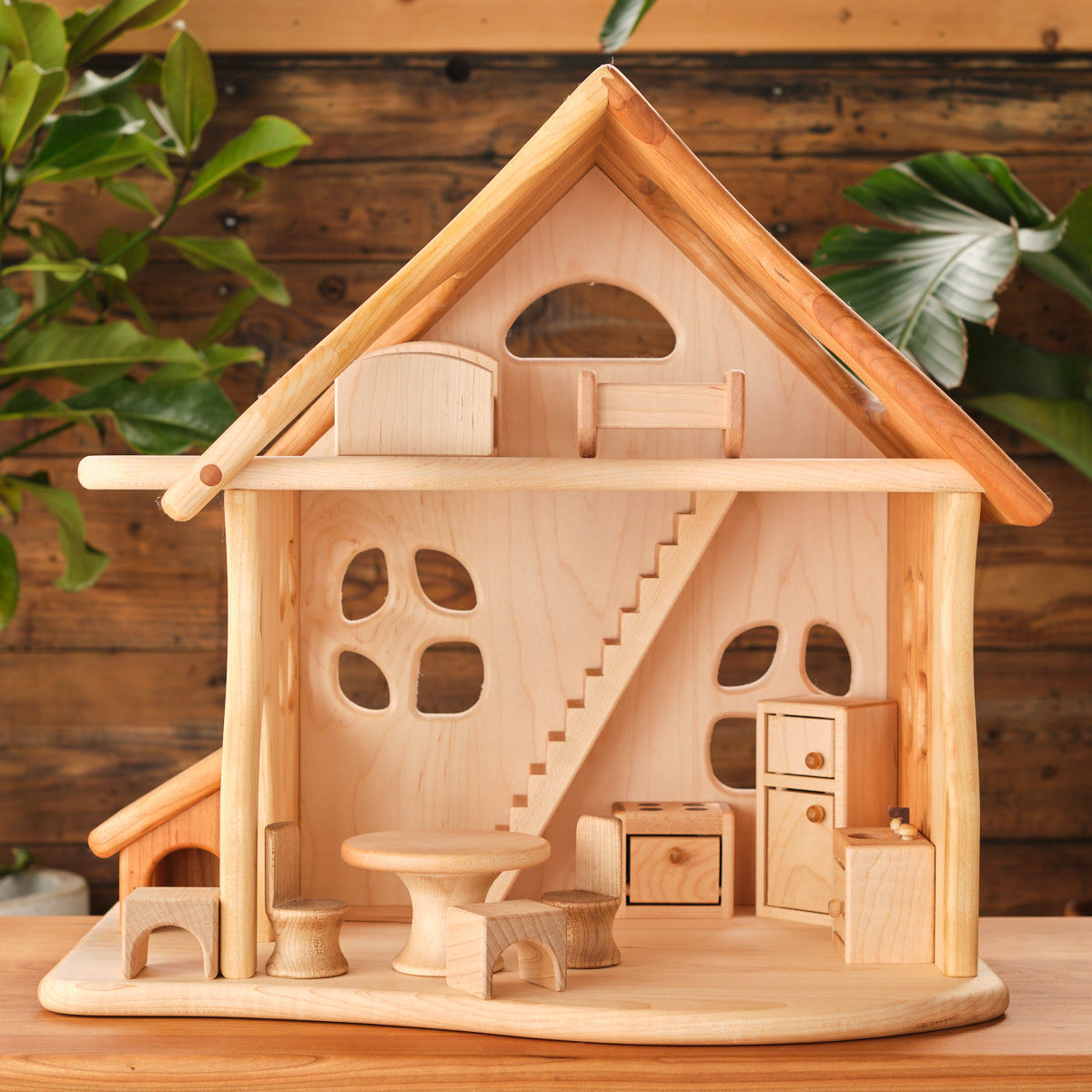Fairy Country Cottage/Dollhouse, Cherry Wood with Maple Accents - With or Without 10-Piece Furniture Set