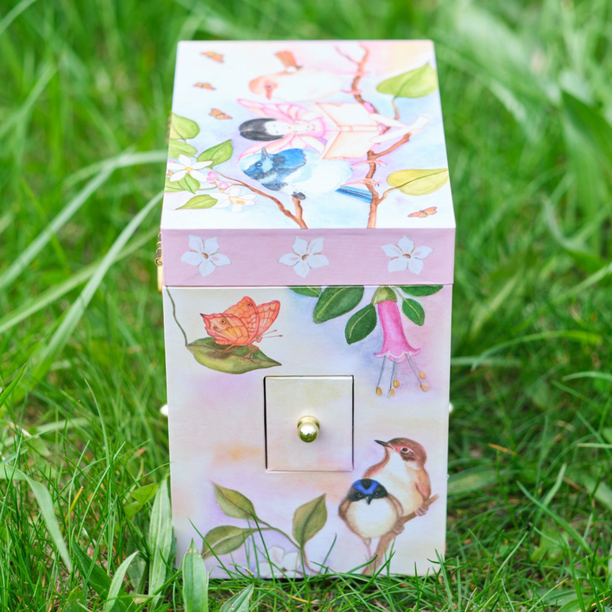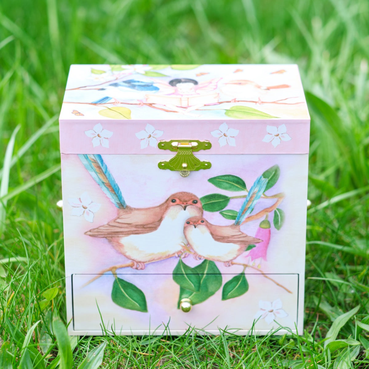 The Fairy Wrens music jewelry box, Mariposa, is an ideal gift for children. The beautiful blue butterfly figurine spins to Tchaikovsky's Dance of the Sugar Plum Fairy.