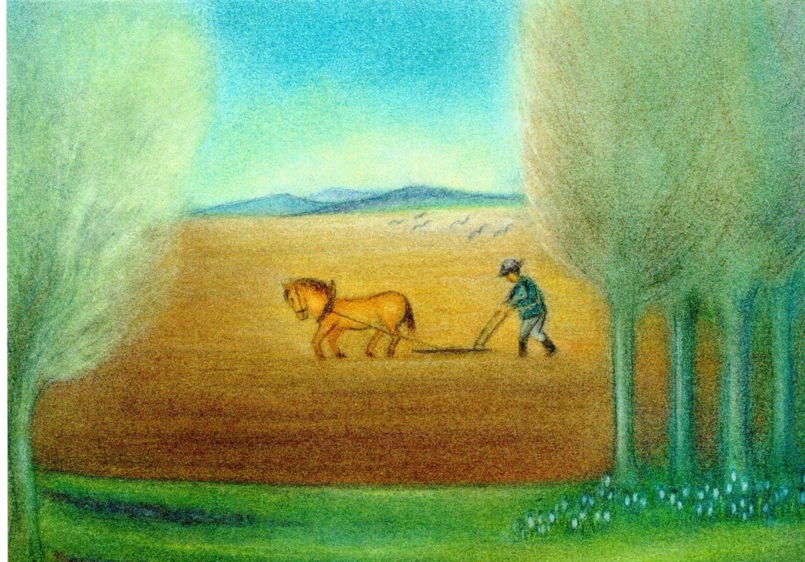 Farmer Plowing Postcard by Ruth Elsasser - 4 1/8" x 5 13/16"