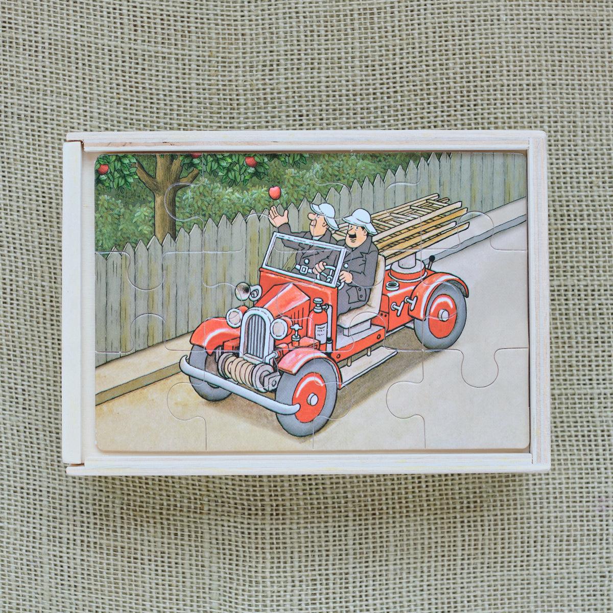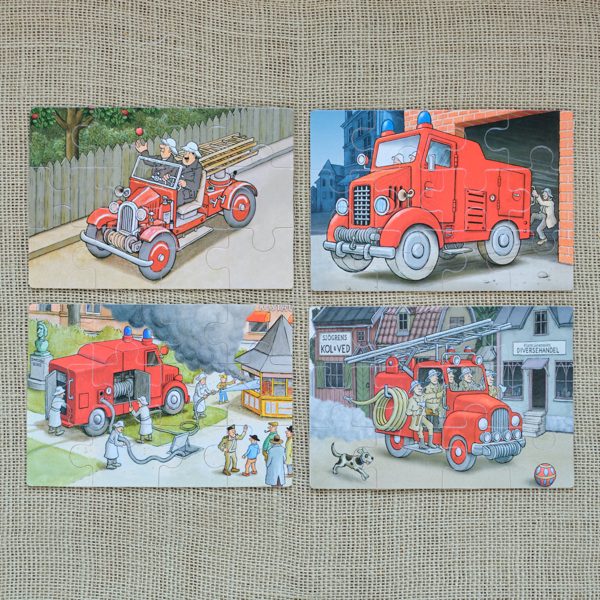 Four different puzzles in one box! Create memories around the house on rainy days with this Fire Truck Box Puzzle. Includes 12 pieces per puzzle, 48 pieces total.