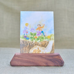 A very cute, whimsical illustration by European artist Johanna Schneider. This postcard will make a great addition to your nature table, inspire the walls of your home or classroom, use as postcards or to just give as a gift.