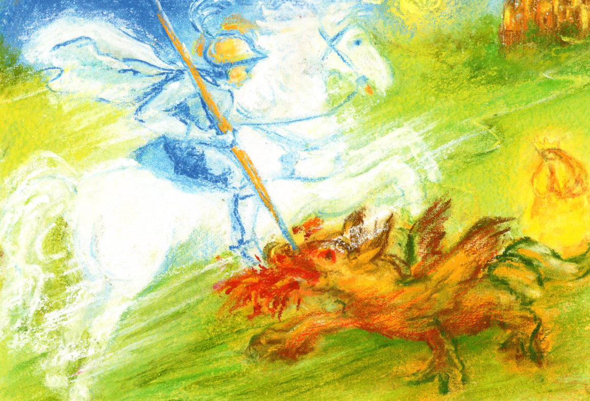 Add George Slays the Dragon postcard to your collection for your postcard holder or to send to a friend.