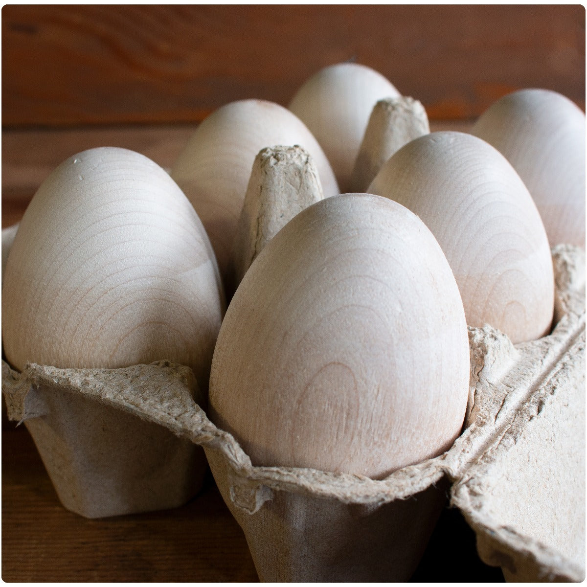 Wooden eggs were first used to seed a nest. This trick has been used for generations among farmers worldwide. As the eggs are the same size and weight of a large chicken egg, farmers placed the wooden eggs in a chicken nest to encourage egg laying.