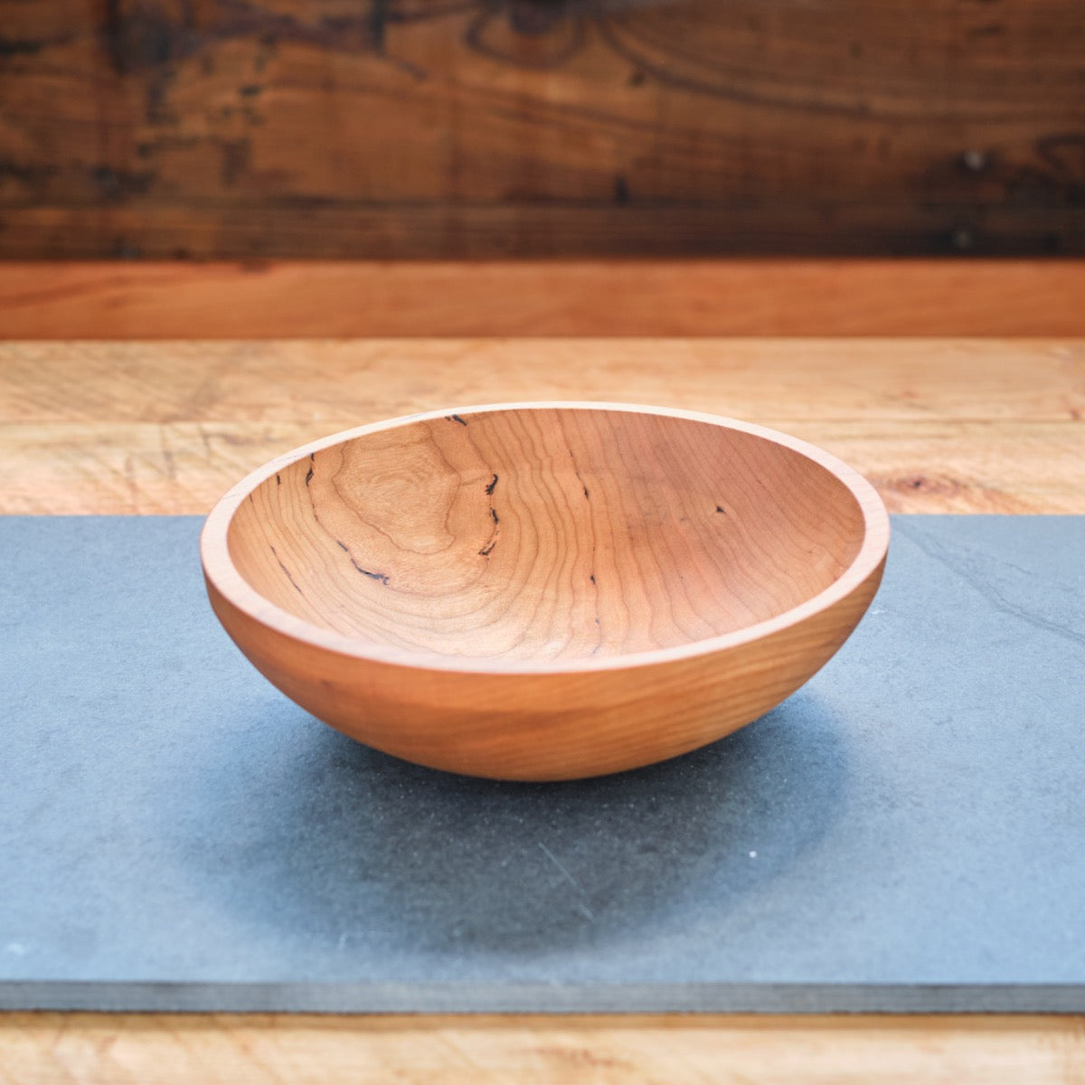 Handmade Wooden Bowl with Thin Sculpted Rim - 8-9" Diameter - Cherry Hardwood