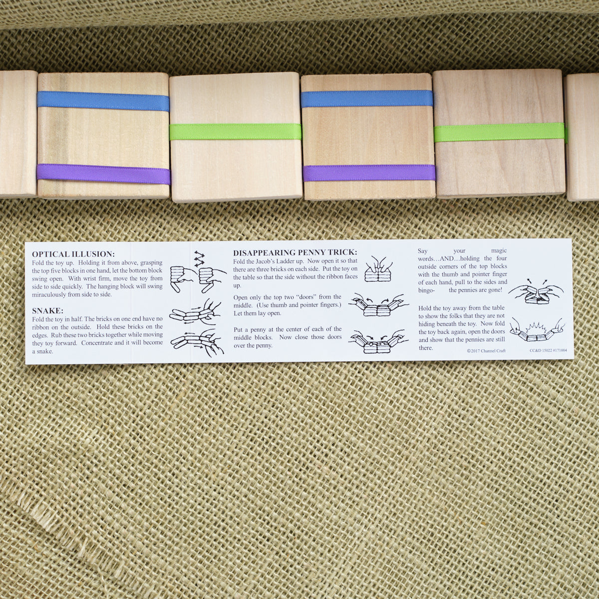 Jacob's Ladder, known all over the world, was a favorite toy of the children during Colonial times. The Mysterious movement of this puzzling toy continues to amaze generations of American children. With illusions, tricks and animal imitations, it is a toy for your imagination!