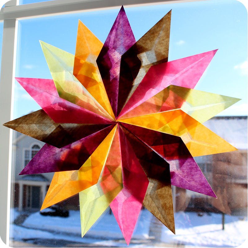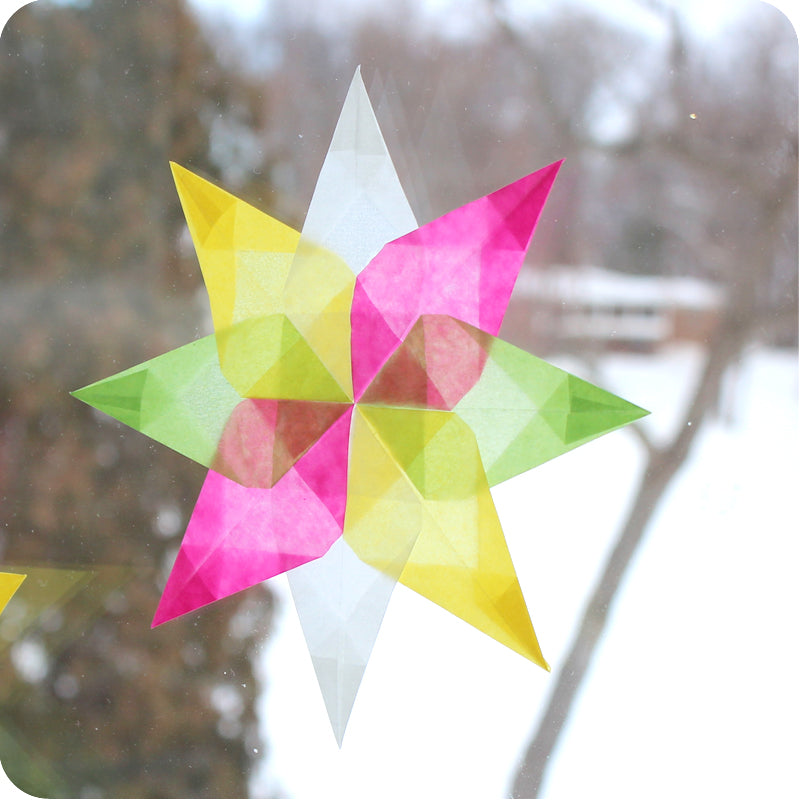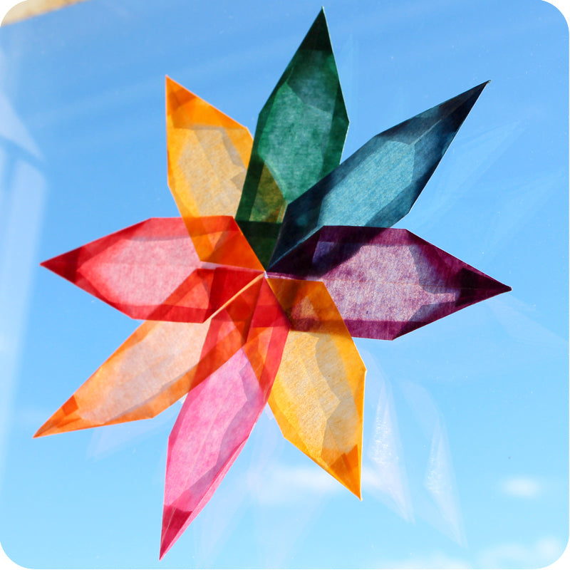 Our kite paper makes beautiful projects that glow when illuminated by light. Window stars, box kites, lantern scenes.