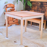 Our larger Simple Table in square shape is sold individually here so you can customize your configuration. Add one or more of our Simple Benches (sized just right to tuck under any side), our Simple Chairs to create your special play space, or our Adult Chairs if you choose the adult height table.