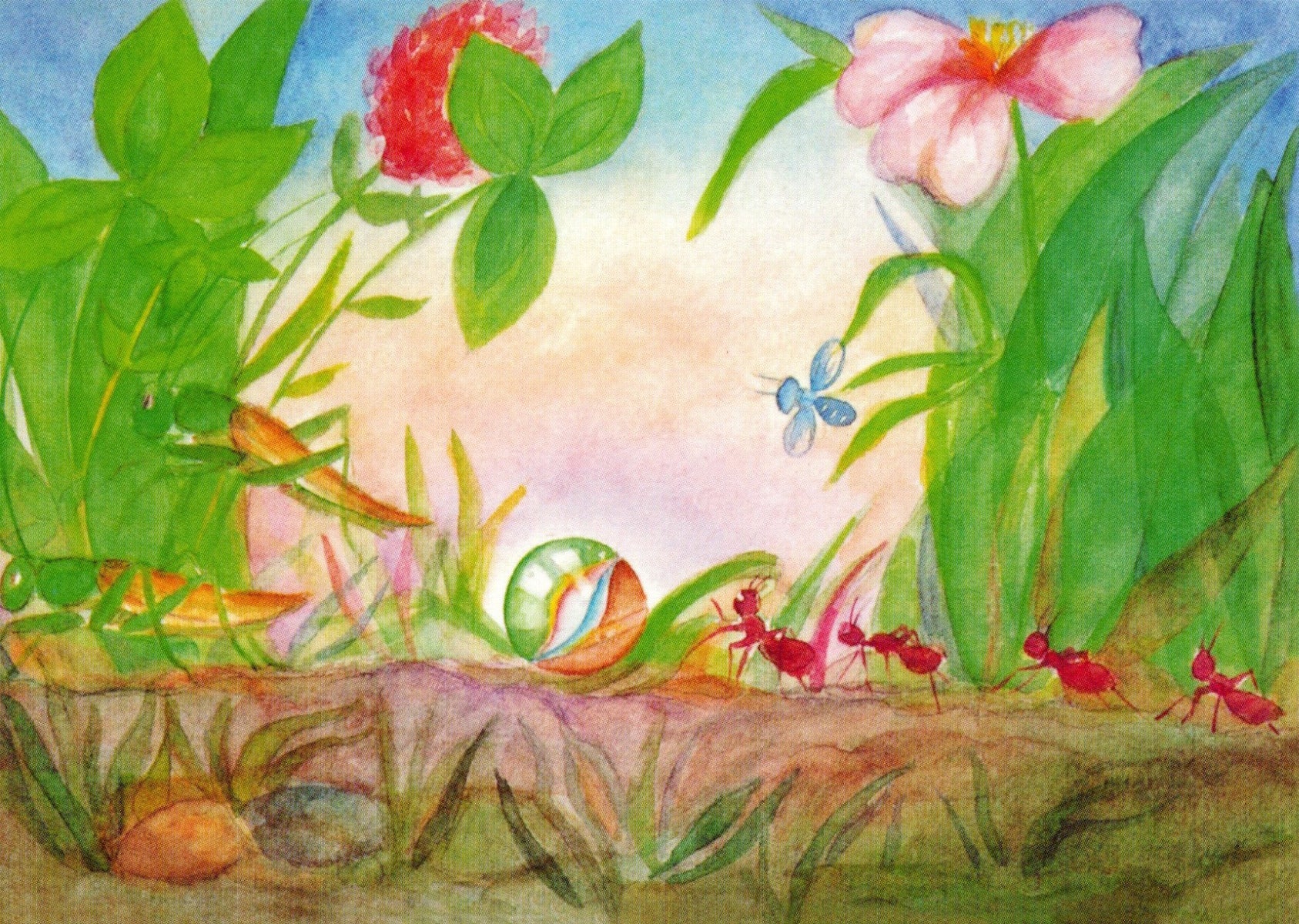 Lost Marble with Ants, Postcard - 5-7/8" x 4-1/8"