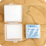 Plastic box keeps the eraser clean and free of debris when not in use.