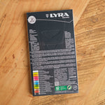 Lyra Rembrandt Aquarell Pencils are fine art professional watercolor pencils. The fine pigments in Lyra's colored pencils are soft and blendable, and can be dissolved almost completely with water. Apply the pigments directly to paper, then soften with a damp brush. Twelve brilliant, lightfast colors include: white, lemon, orange, pale geranium lake, dark carmine, light blue, Prussian blue, sap green, apple green, van dyck brown, venetian red and black. Unlacquered, 7" slim hexagon barrel with lacquered ends.