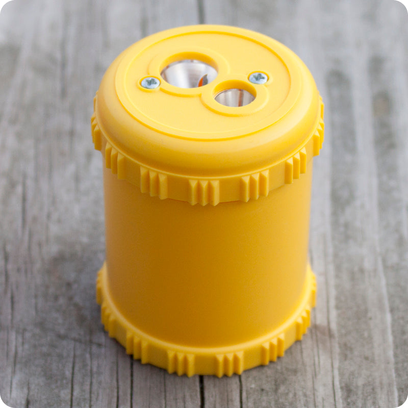 Lyra Twin-Hole Drum Pencil Sharpeners are designed to sharpen slim barrel and Lyra Color Giants, Super Ferby, and Ferby triangular barrel pencils. A functional 'drum' holds pencil shavings and keeps your child's desk and back packs clean! The Twin-Hole Drum Pencil Sharpener is available in yellow, red, green or blue.