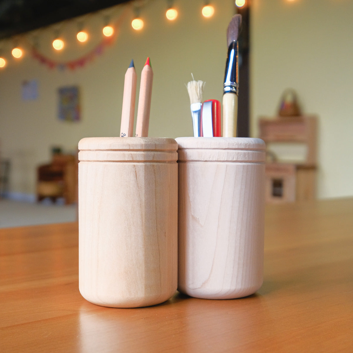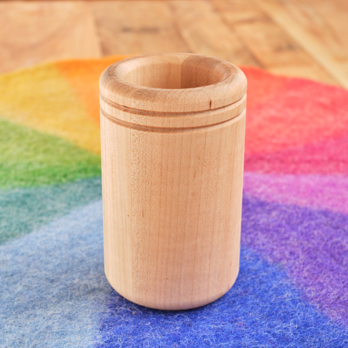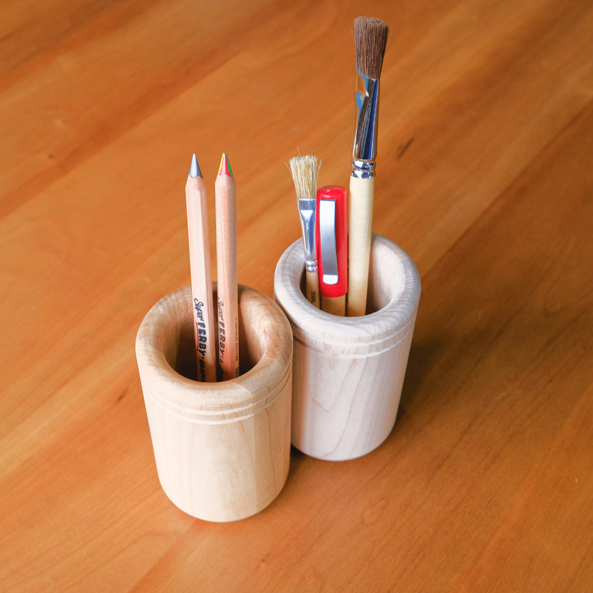 This Maple Wood Utensil Holder is the right fit for pencils on your desk, utensils on the play kitchen, or to store other miscellaneous things around the house. It is finished with Three BEEautiful Bees All Natural Wood Polish and is 5" tall. The wood colors vary from dark maple to light maple.