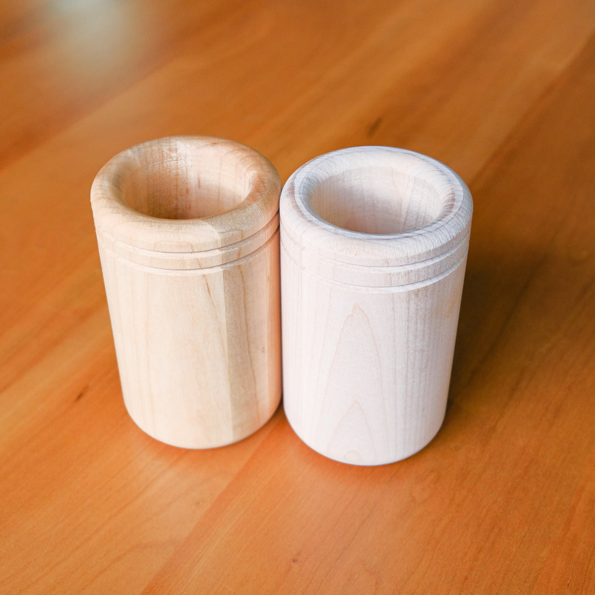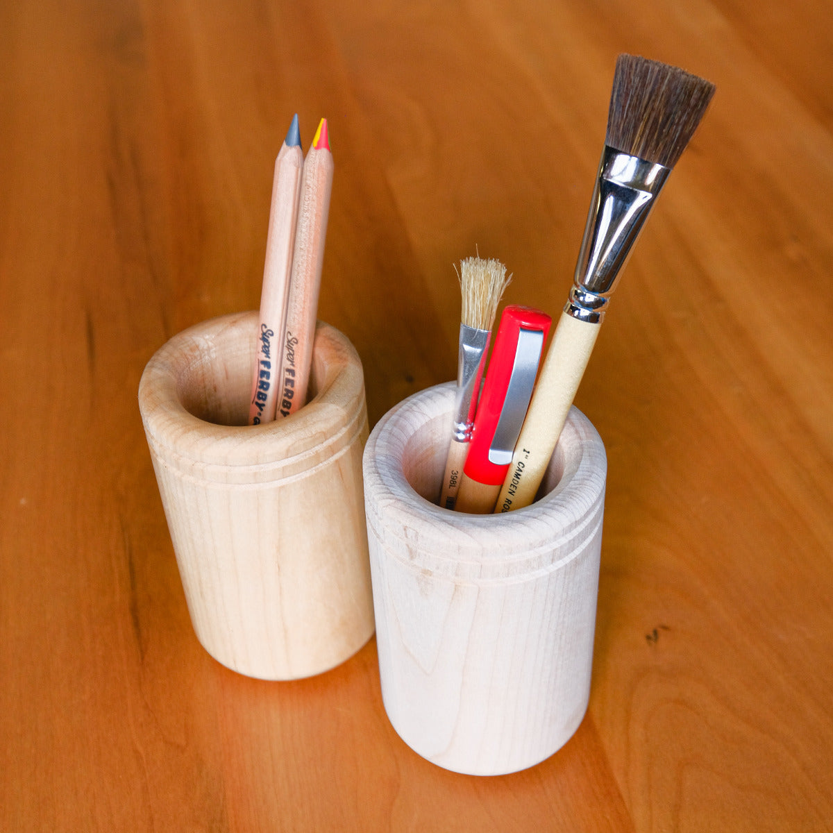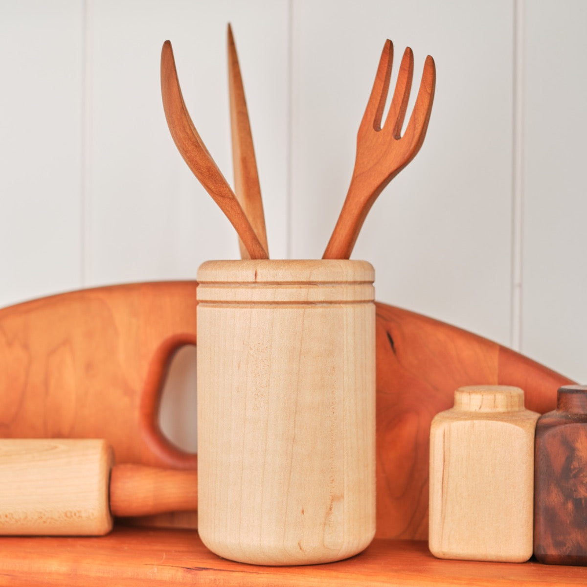 This Maple Wood Utensil Holder is the right fit for pencils on your desk, utensils on the play kitchen, or to store other miscellaneous things around the house. It is finished with Three BEEautiful Bees All Natural Wood Polish and is 5" tall. The wood colors vary from dark maple to light maple.