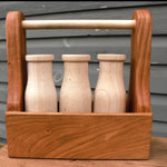 Milk Crate with 3 Wooden Bottles - Cherry and Birch Wood