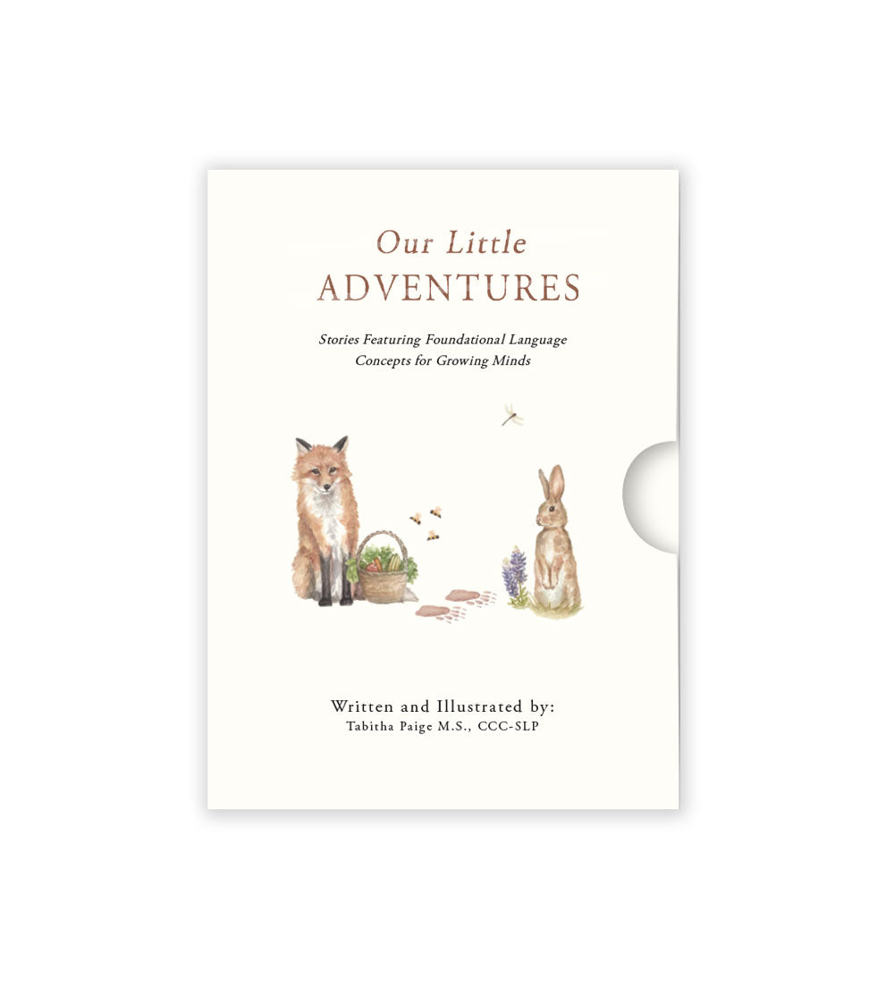 Encourage your child's language development through the exploration of nature and stories about friendship and kindness. Created by licensed speech pathologist Tabitha Paige, the three books in this set take parents and children on adventures to the farmers market, the forest, and a wildflower meadow. These engaging stories incorporate early language concepts such as colors, counting, prepositions, quantities, and basic vocabulary.