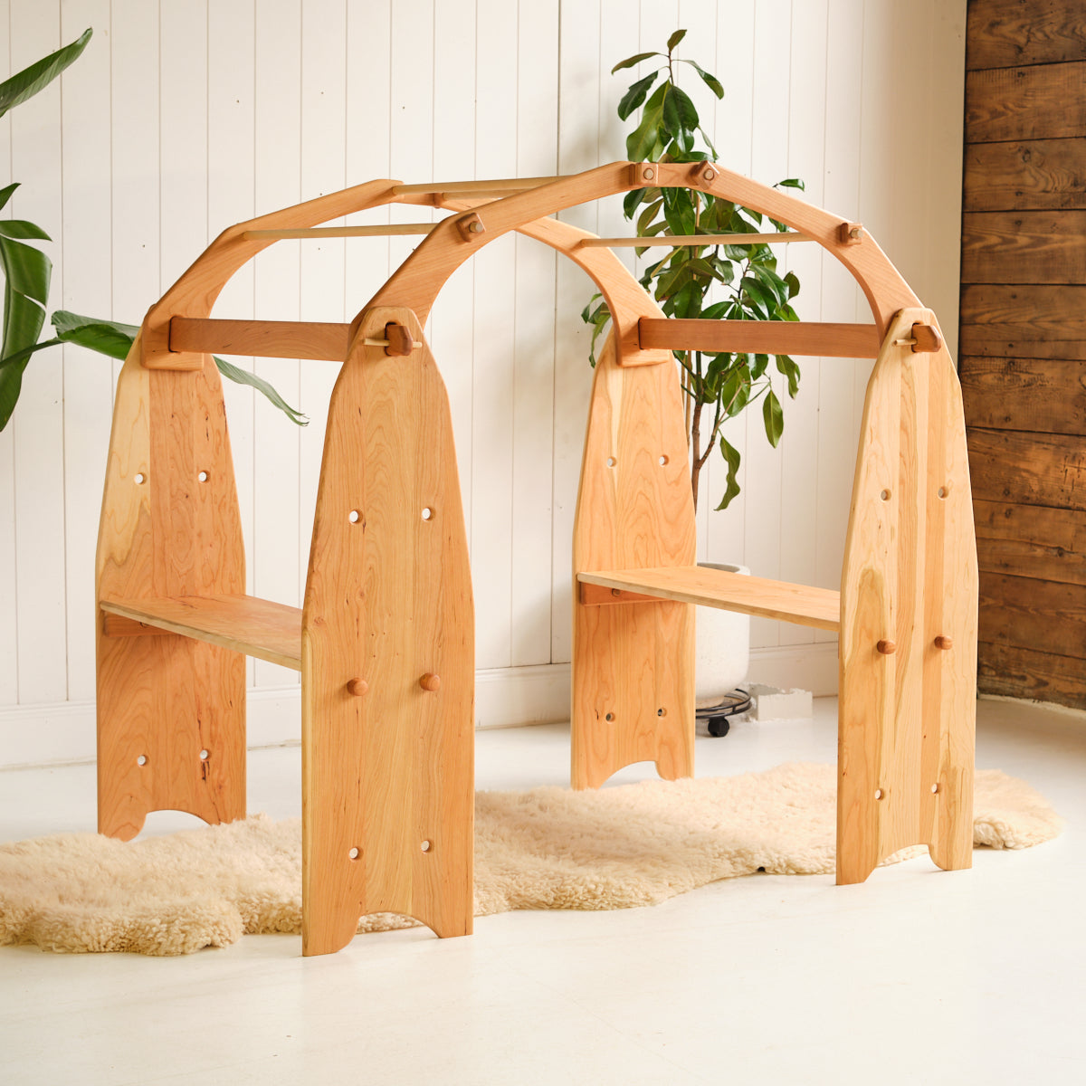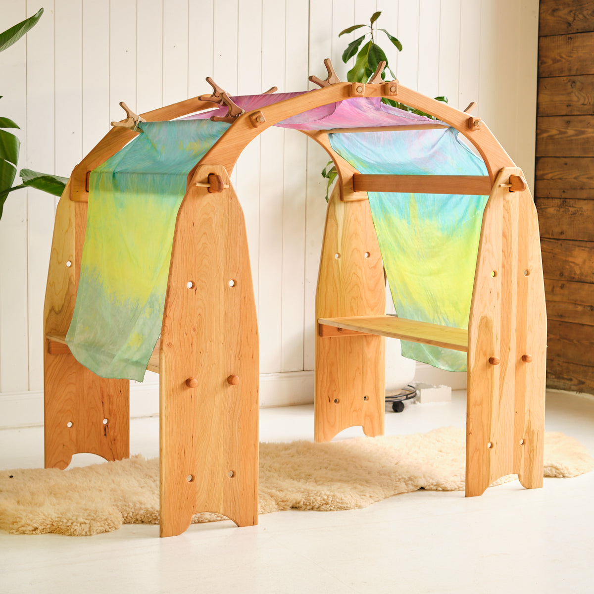 Crafted from warm cherry hardwood, our Play Stand play room is functional, easy to assemble, and beautifully designed. Without the use of tools or glue, the play room may be set up or dismantled in less than five minutes. Crafted with Camden Rose's signature rounded, flowing edges which encourage a nurturing environment for your child to develop and flourish in.