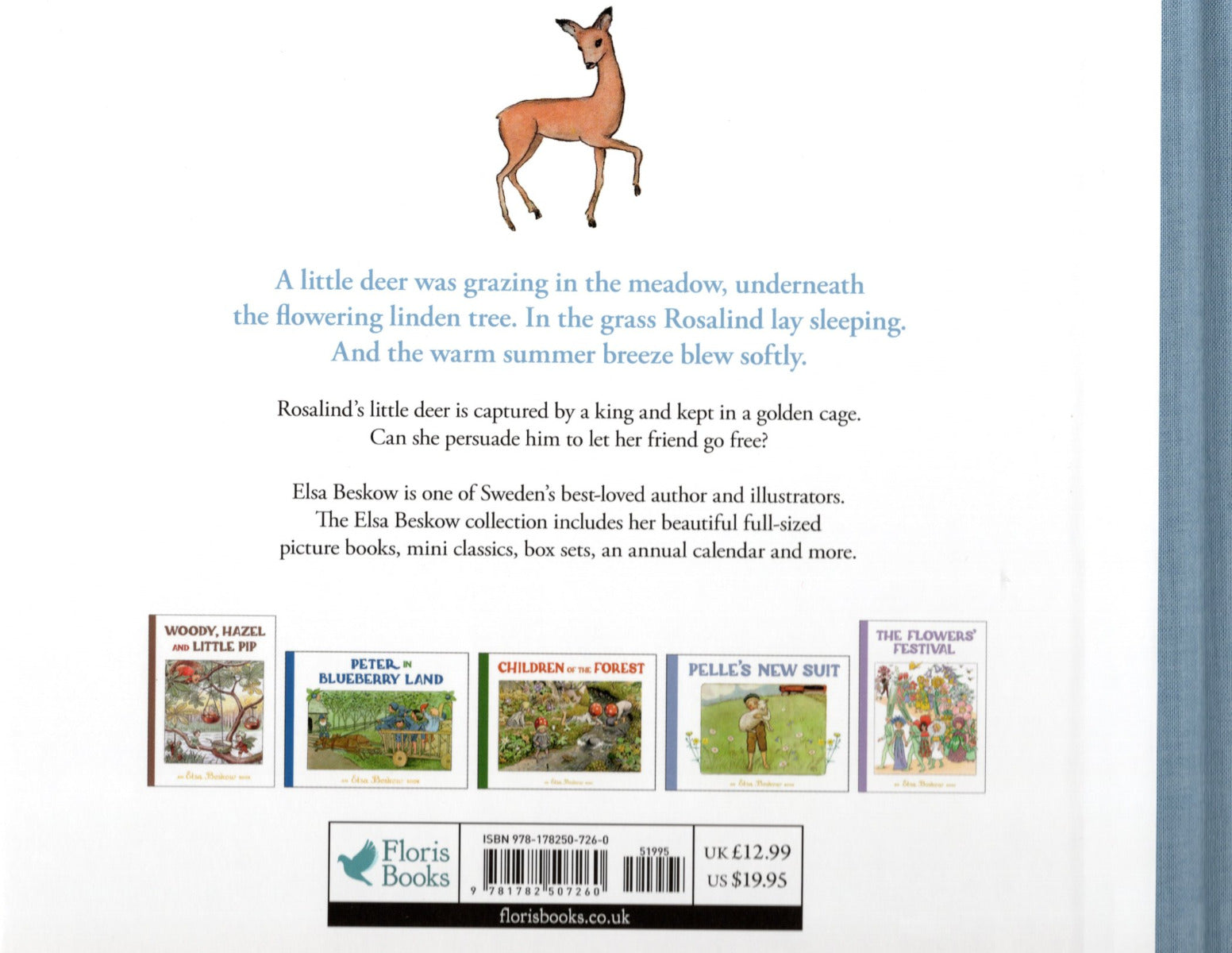 In Rosalind and The Little Deer, Elsa Beskow presents an old, classic fairy tale in a new way. When Rosalind's little deer is captured by a king and kept in a golden cage, can the little girl persuade the king to let her friend go free?