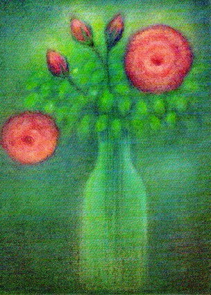 Roses in Green Vase Postcard by Ruth Elsasser - 4-1/8" x 5-13/16"