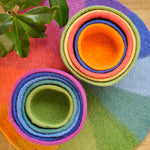 These fill-able, stack-able 100% wool felted nesting bowls match any room décor while adding natural texture and character. Great storage for smaller items. Includes 5 round bowls.