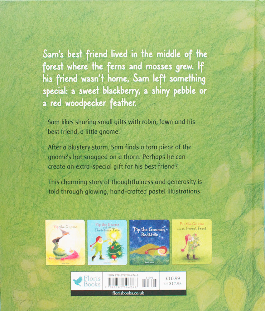 "Sam's best friend lived in the middle of the forest where the ferns and mosses grew. If his friend wasn't home, Sam left something special: a sweet blackberry, a shiny pebble or a red woodpecker feather."