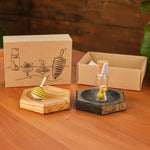 The Beehive Spinning Top Set includes three uniquely sized bee tops and two honeycomb boards in Natural Oak and Blackened Oak. This portable set is perfect for solo or pair play.