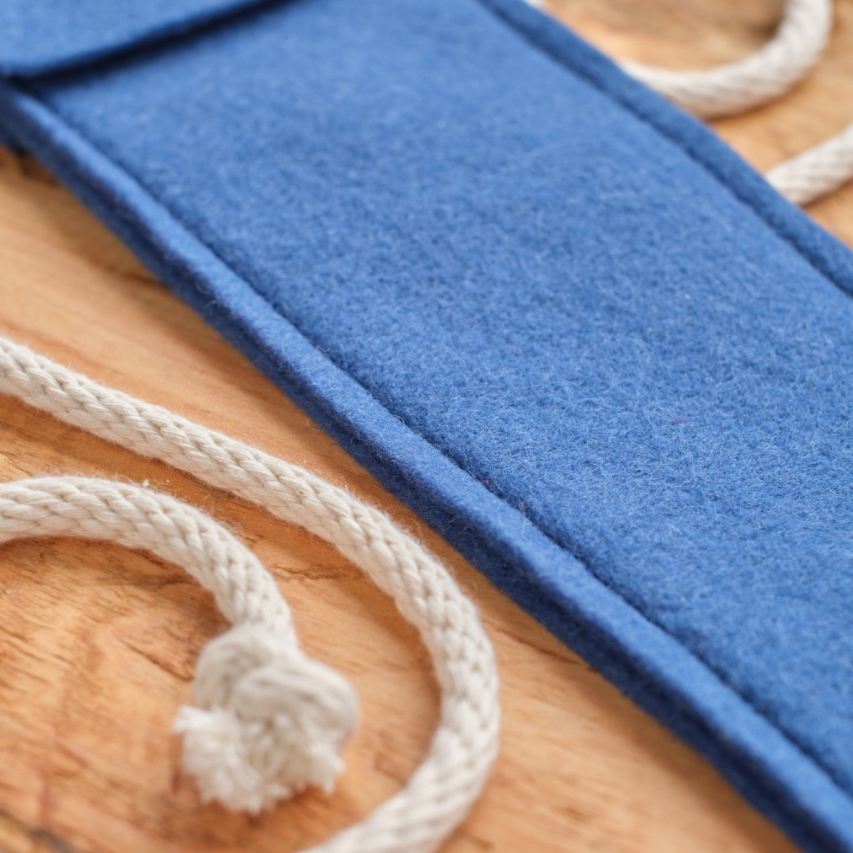 Every budding woodsman needs a fashionable sheath for their sword. Our sheath is made from 100% wool (designed to fit our long sword perfectly); 100% braided cotton belt. Select from gold, blue, or red color choices.