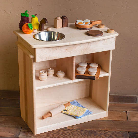 It's the same height as our Simple Hearth to expand the play kitchen. You can extend the functionality of our Simple Bookcase with the addition of our Table Top Play Kitchen (sold separately).
