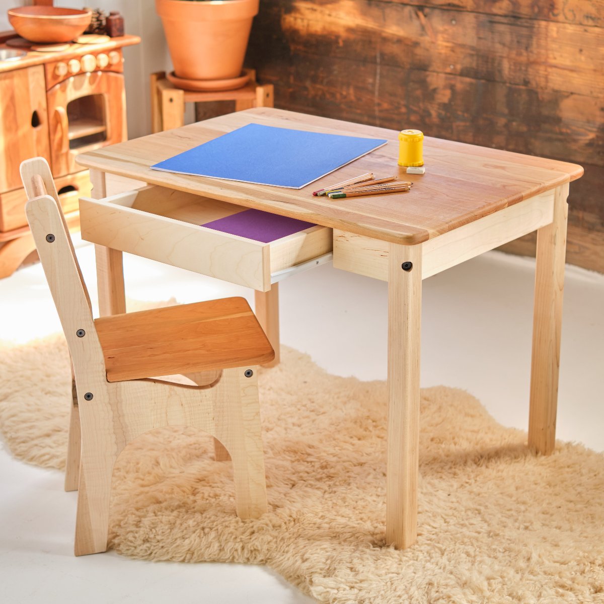Looking for a beautiful beginning desk for your child? This Simple Desk with our Farmhouse Chair is great for children ready to sit down and begin desk work. This desk is the same height as our Simple Table (yes, our Simple Benches work with it also) and our Farmhouse Table. As with all of our tables, when your child has outgrown this size, we have adult size legs that you can purchase to convert! Available to purchase the desk with 1 chair, or the desk on its own!