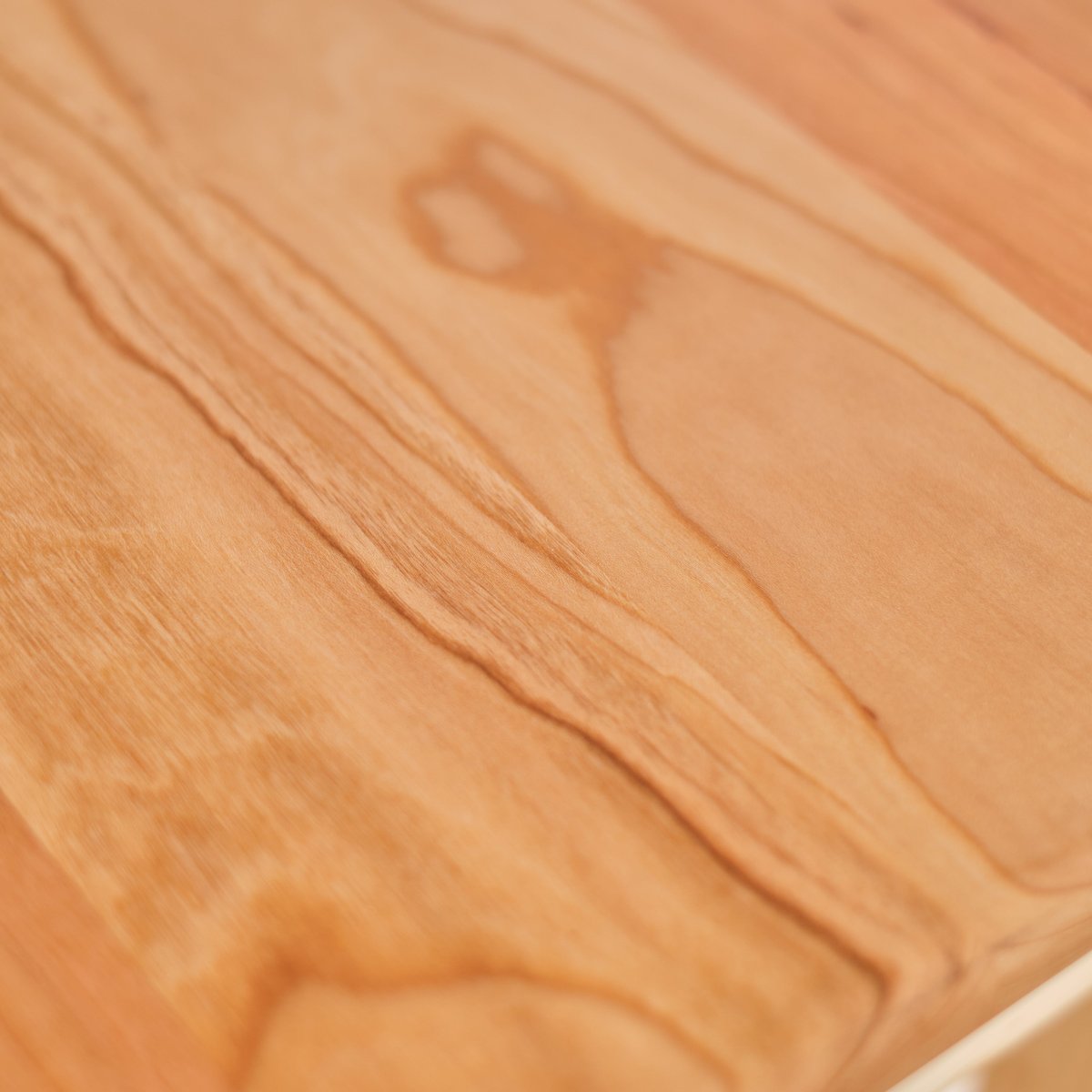 Weight Capacity: 100 lbs. - Materials: Cherry Wood top, with Maple Legs/Skirt, metal painted drawer glides and Baltic birch plywood bottom drawer