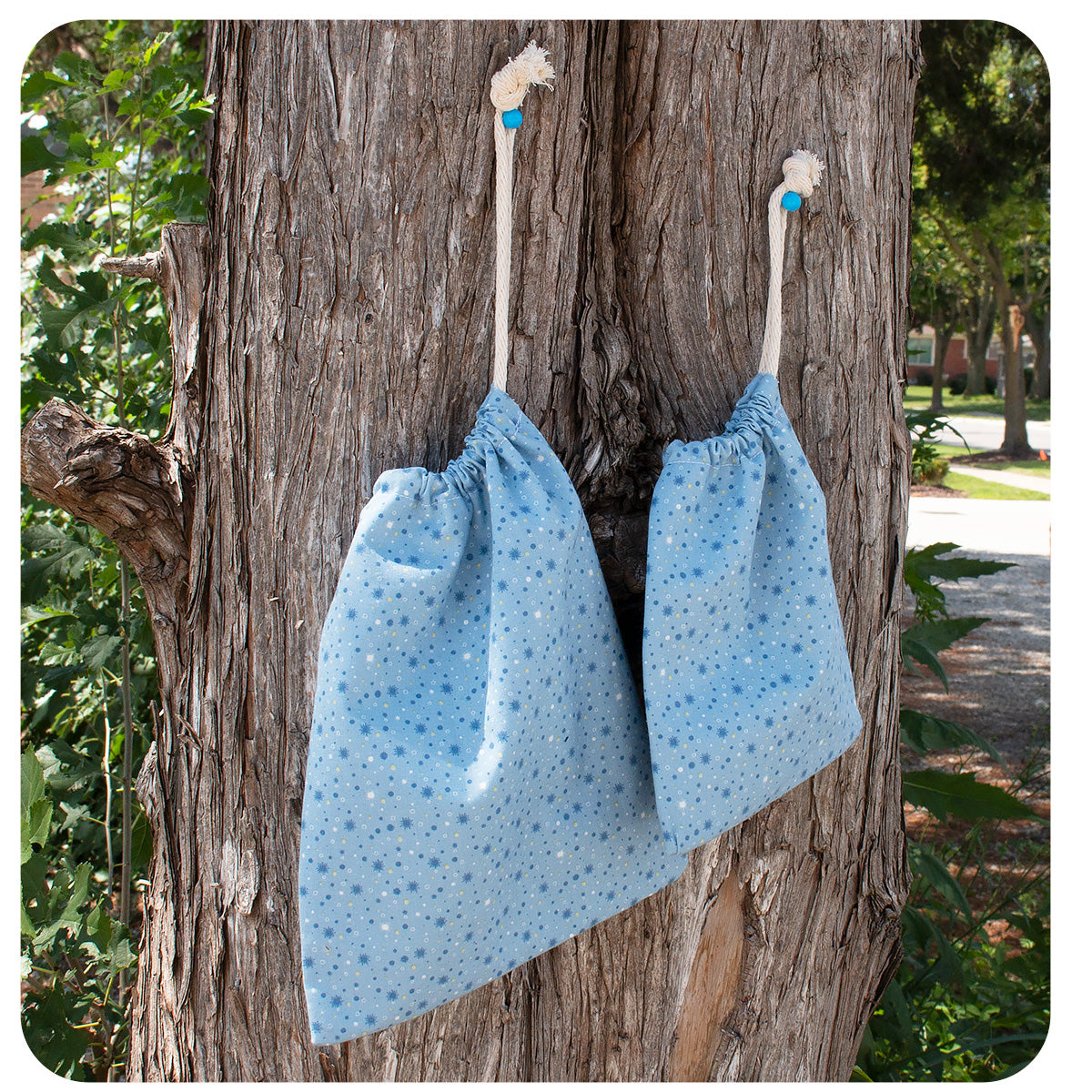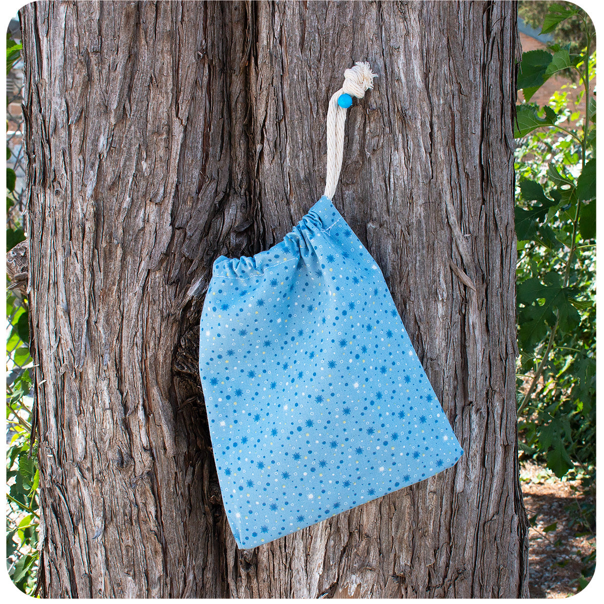 Small Cotton Gift Bag / Storage Bag - Light Blue with Bursts 6.5" x 7"