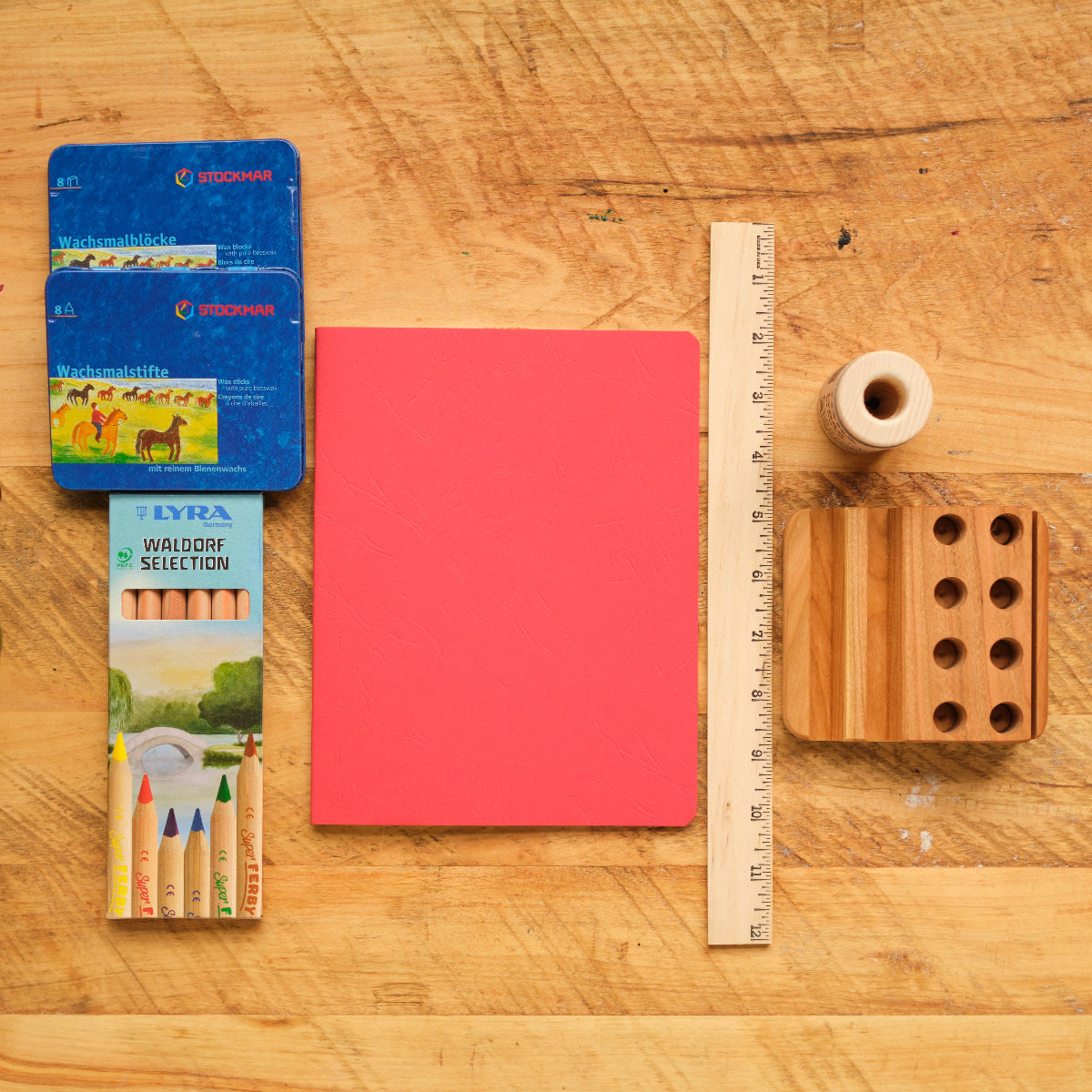 Small Lesson Book Journal Trio, Portrait Format, Red, Blue, Yellow 8.3" x 6.3" - with Onion Skin