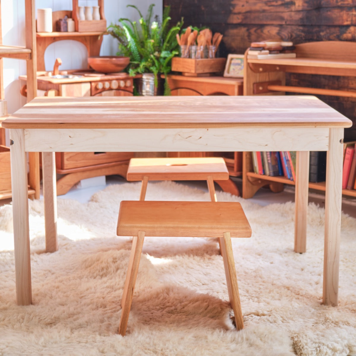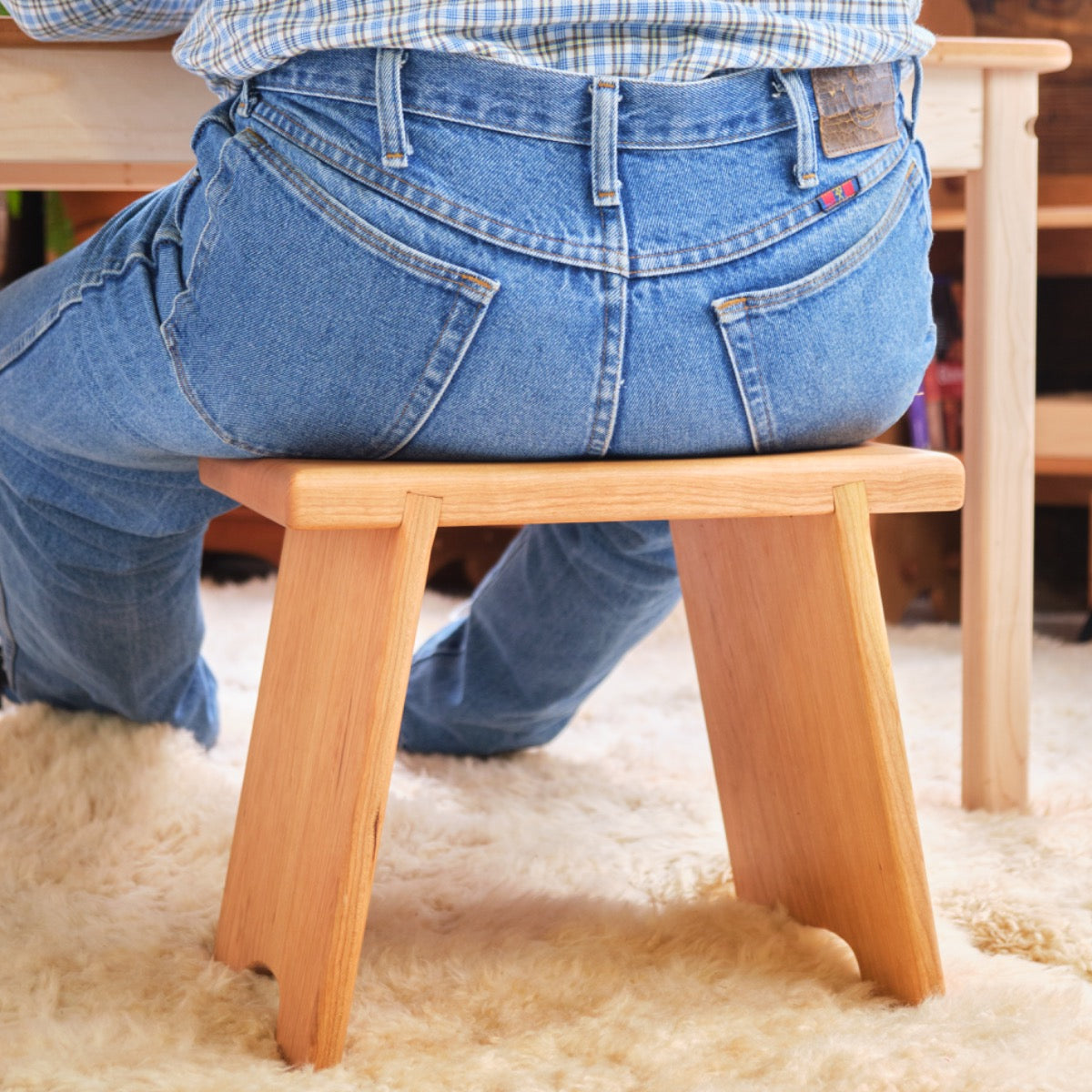 Our Wooden Cherry Step Stools provide your child with a little more height and a lot more independence. Just the right size to have around the house for those hard to reach places or to use with our Play Table (with short legs) as an extra seat. Made of thick, solid cherry hardwood. Holds up to 200 lbs.