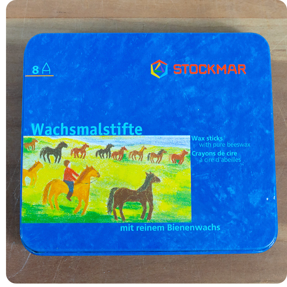 Stockmar Stick Crayons help toddlers and preschool children develop the right finger grip for writing. Vivid colors and pleasant fragrance of Stockmar Stick Crayons appeal to a child's senses. Eight beautiful, blendable opaque colors are packaged in a tin case.