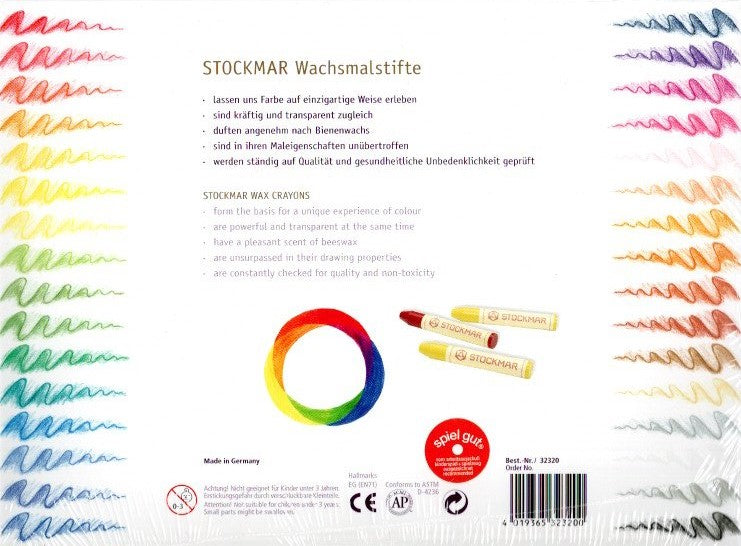Vivid colors and pleasant fragrance of Stockmar Stick Crayons appeal to a child's senses. Used in Waldorf Schools world wide, Stockmar natural art supplies are free of toxins and other additives.