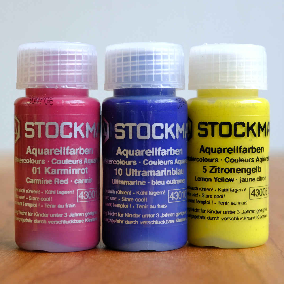 Stockmar Watercolor Paint Trio - Carmine, Lemon, Ultramarine, 20 ml