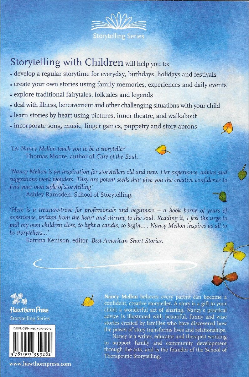 Storytelling with Children will help you to: develop a regular story time for everyday, birthdays, holidays, and festivals; create your own stories using family memories, experiences and daily events; explore traditional fairy tales, folktales and legends; use story to help your child deal with illness, bereavement and other challenging situations; learn stories by heart using pictures, inner theater, and walk about; incorporate song, music, finger games, puppetry and story aprons.
