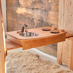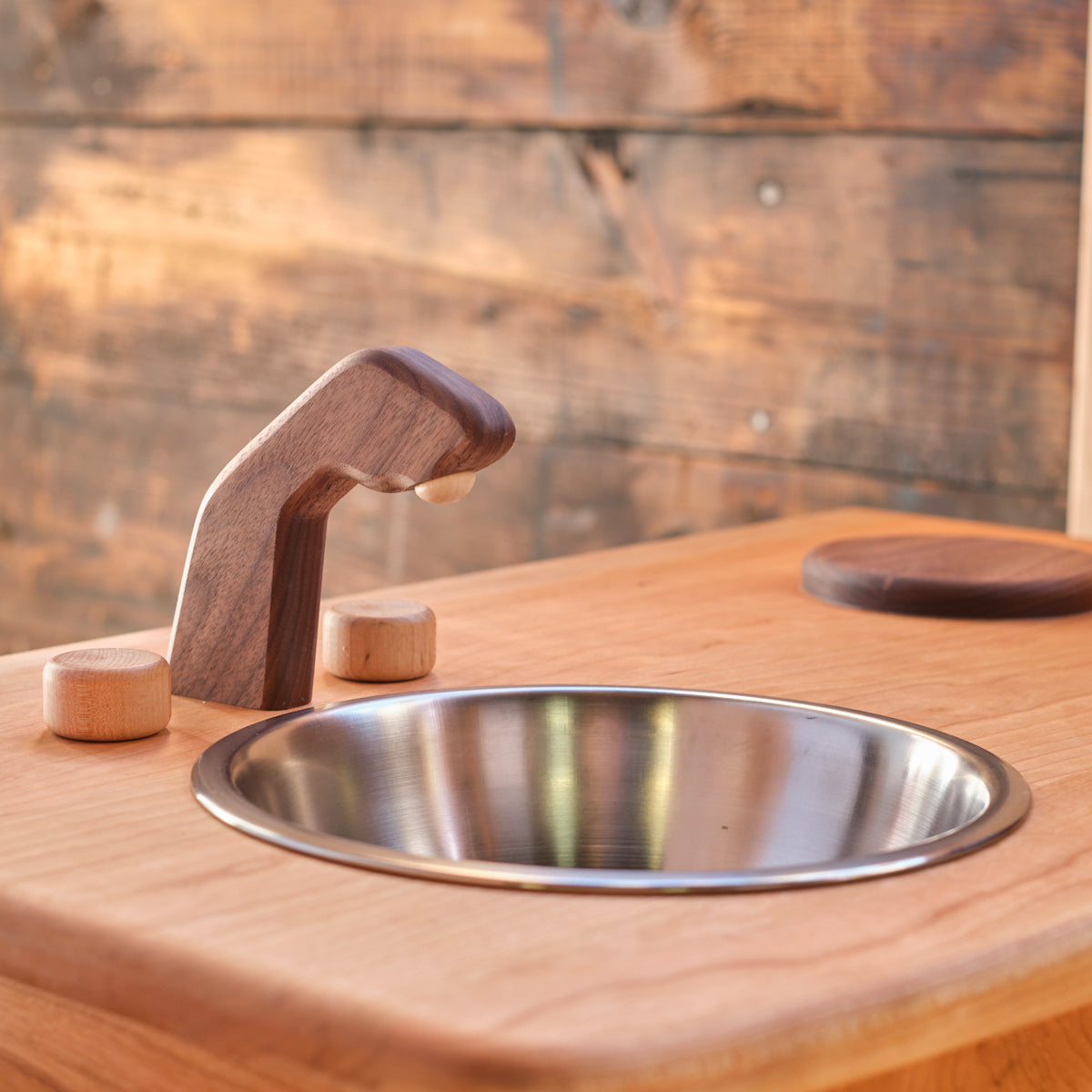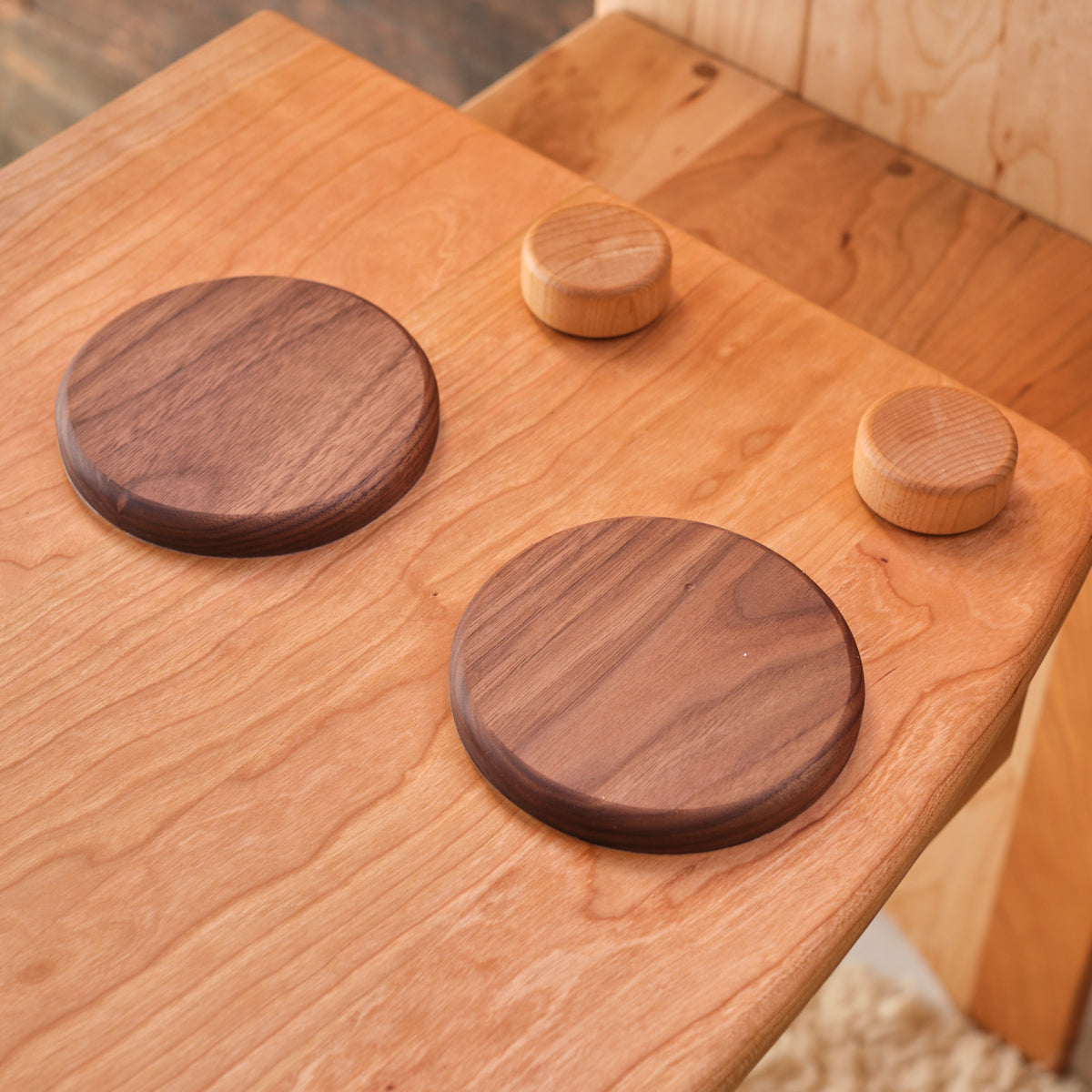 The contemporary modular design of our Wooden Table Top Play Kitchen is perfect for small spaces! Designed to fit our Simple Bookcase or 12" wide Playstand shelf, this portable play kitchen is easily tucked away when not in use.