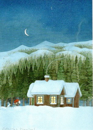 Tomten and hare on their way to a cozy cottage! Illustration by European artist Catarina Kruusval. This postcard will make a great addition to your nature table, inspire the walls of your home/classroom, use as postcard or to just give as gift.