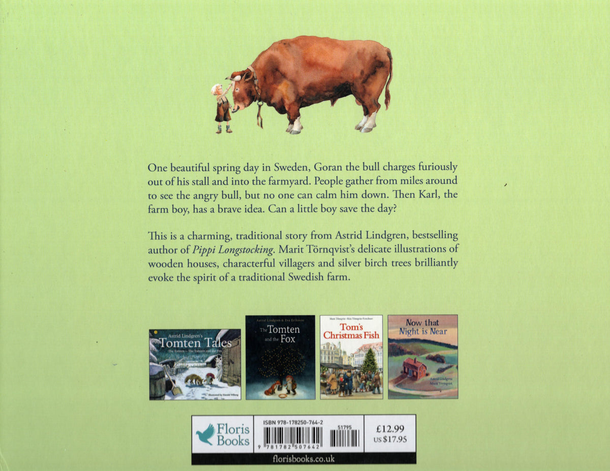 One beautiful spring day in Sweden, Goran the bull charges furiously out of his stall and into the farmyard. People gather from miles around to see the angry animal, but no one can calm him down. Then Karl, the farm boy, has a brave idea. Can the little boy save the day?