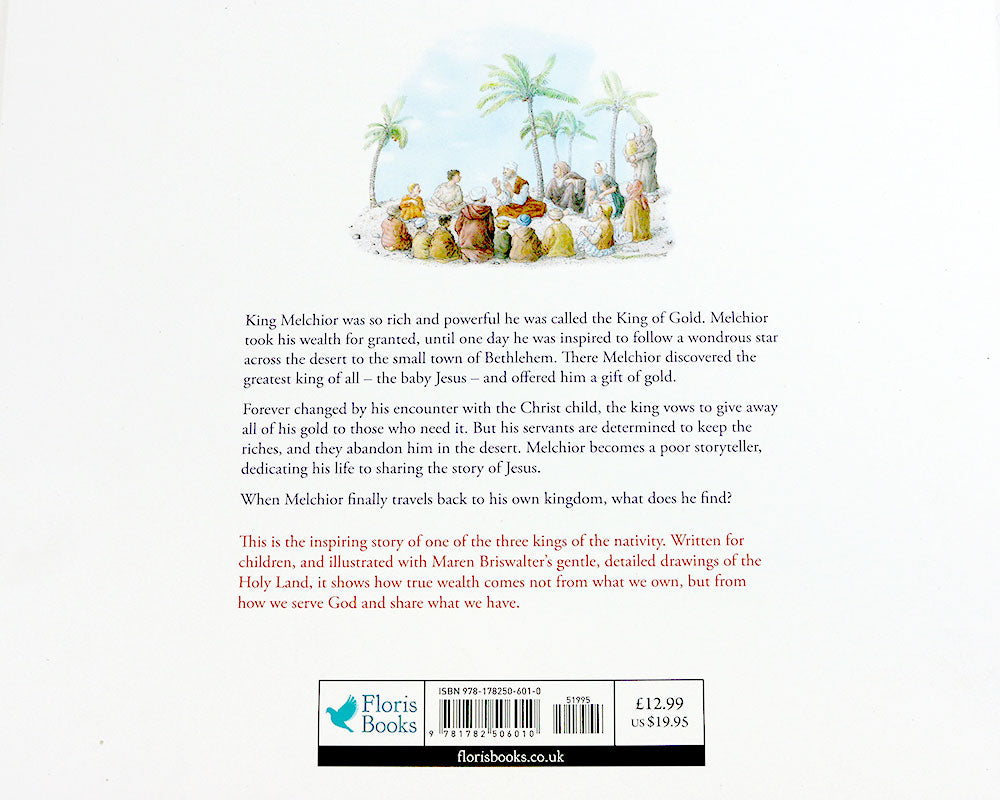 This holiday seasonal story is of one of the three kings of the nativity. Written for children and illustrated with Maren Briswalter's gentle, detailed drawings of the Holy Land, it shows how true wealth comes not from what we own, but from how we serve God and share what we have.