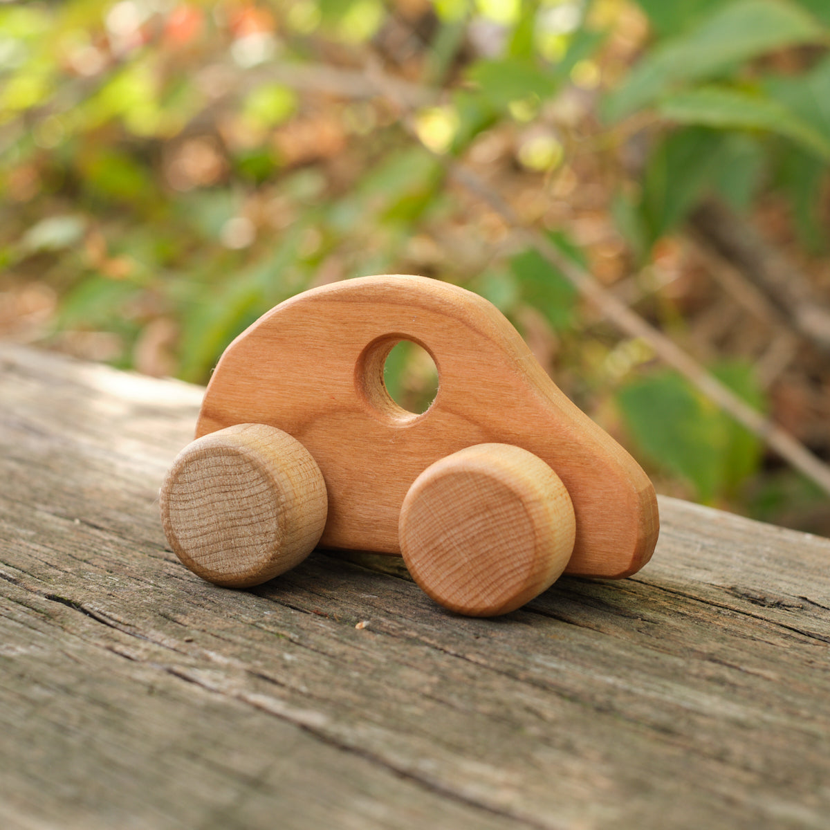 The Toddler Zoom Wood Car is slightly smaller than the Toddler Eco Car. Built with the quality you've come to expect from Camden Rose, Inc, the wooden toy car is finished with Three BEEautiful Bees All Natural Beeswax Polish to protect the wood.