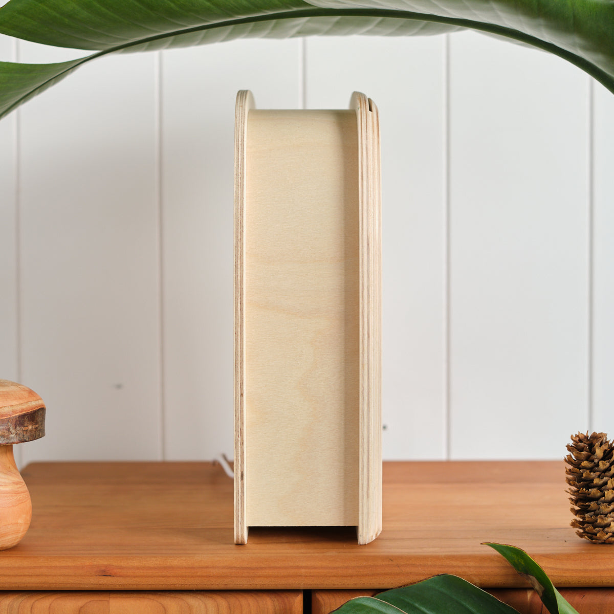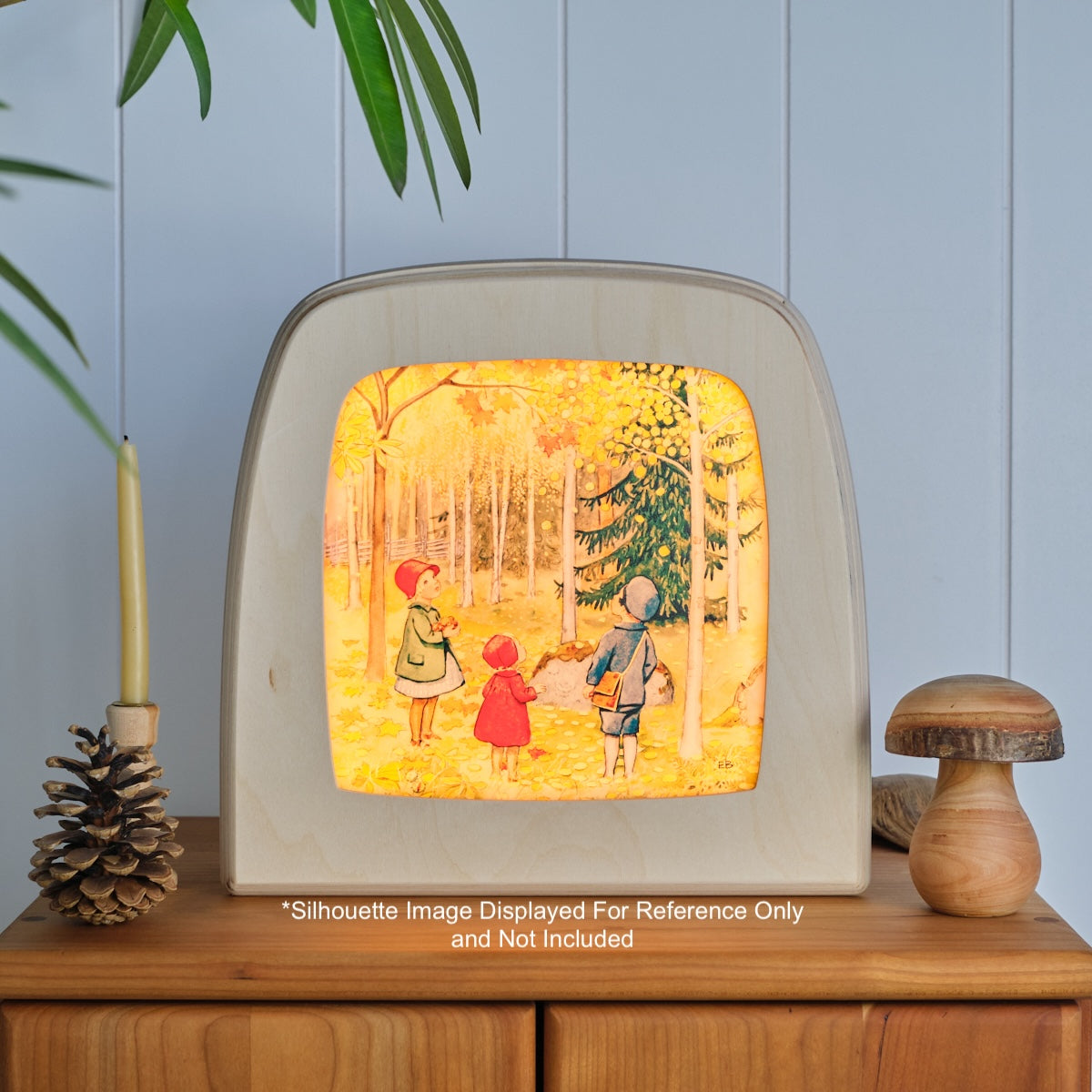The Toverlux Lamp is lovingly crafted with a sturdy wooden base, making it capable of showcasing a stunning collection of Magic Silhouettes created by talented artists. You can easily slide these silhouettes in and out of the lamp, allowing you to customize your collection for any moment or season and ignite your imagination.