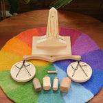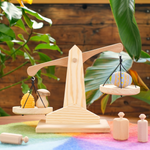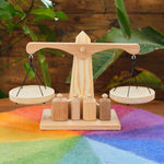 This solid wooden toy scale is an excellent tool for mathematical development. It helps your child develop an understanding of weights and measurements through imaginative play. The scale comes with 4 weights and is unassembled so the balancing peg (choking hazard) needs to be put in place.