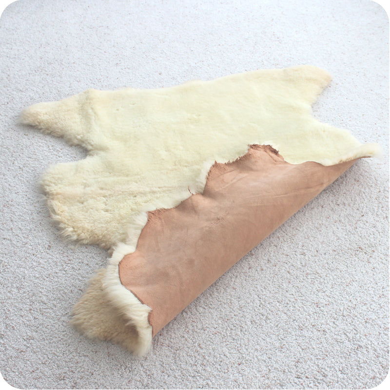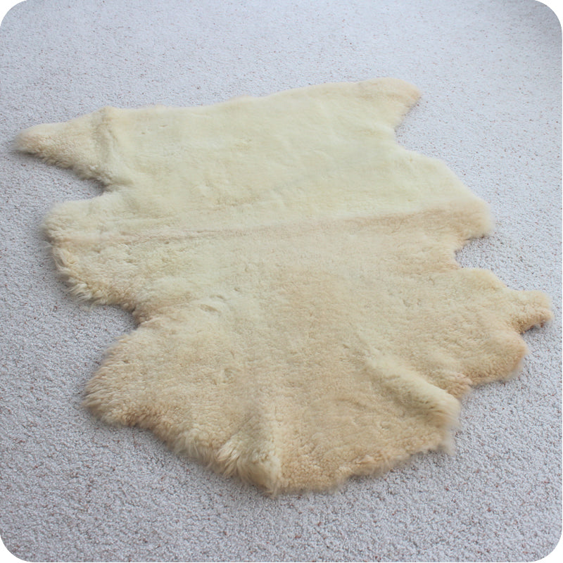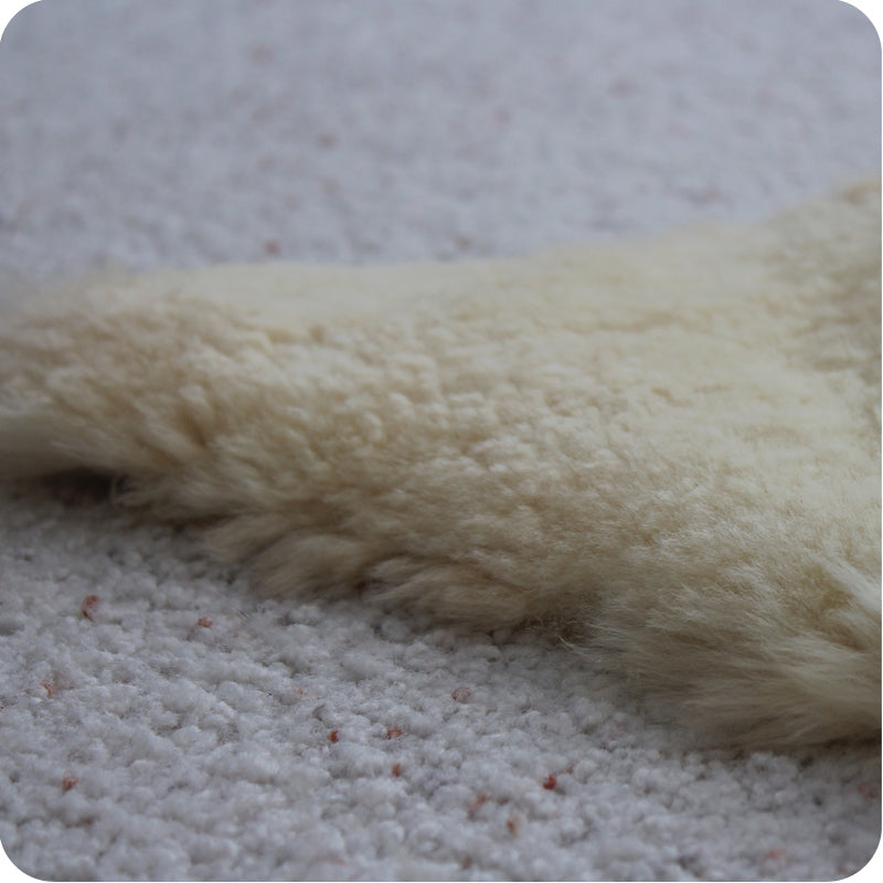 Soft and comfy, sheepskin fibers impart warm comfort. It makes a great playroom rug. These sheepskins are soft and luxurious and feel great under your feet. Dry clean is the suggested method for cleaning, but we have found that natural cleaning methods for washing wool produces suitable results.
