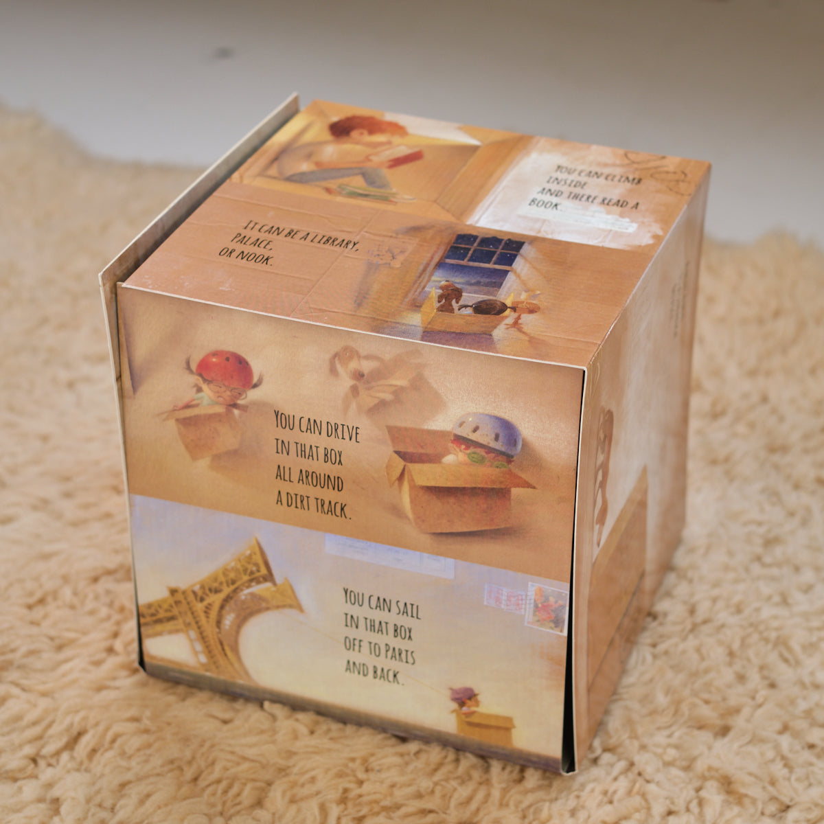 Gifting a box opens up endless possibilities. It could transform into a library, a boat, or inspire a fairy tale. A box has a special ability to spark imagination, as demonstrated in Chris Sheban's art and praised by children's author Jane Yolen.