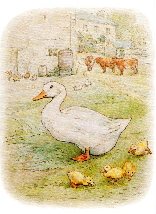 White Duck with Ducklings by Beatrix Potter, Postcard - 4 1/8" x 5 13/16"