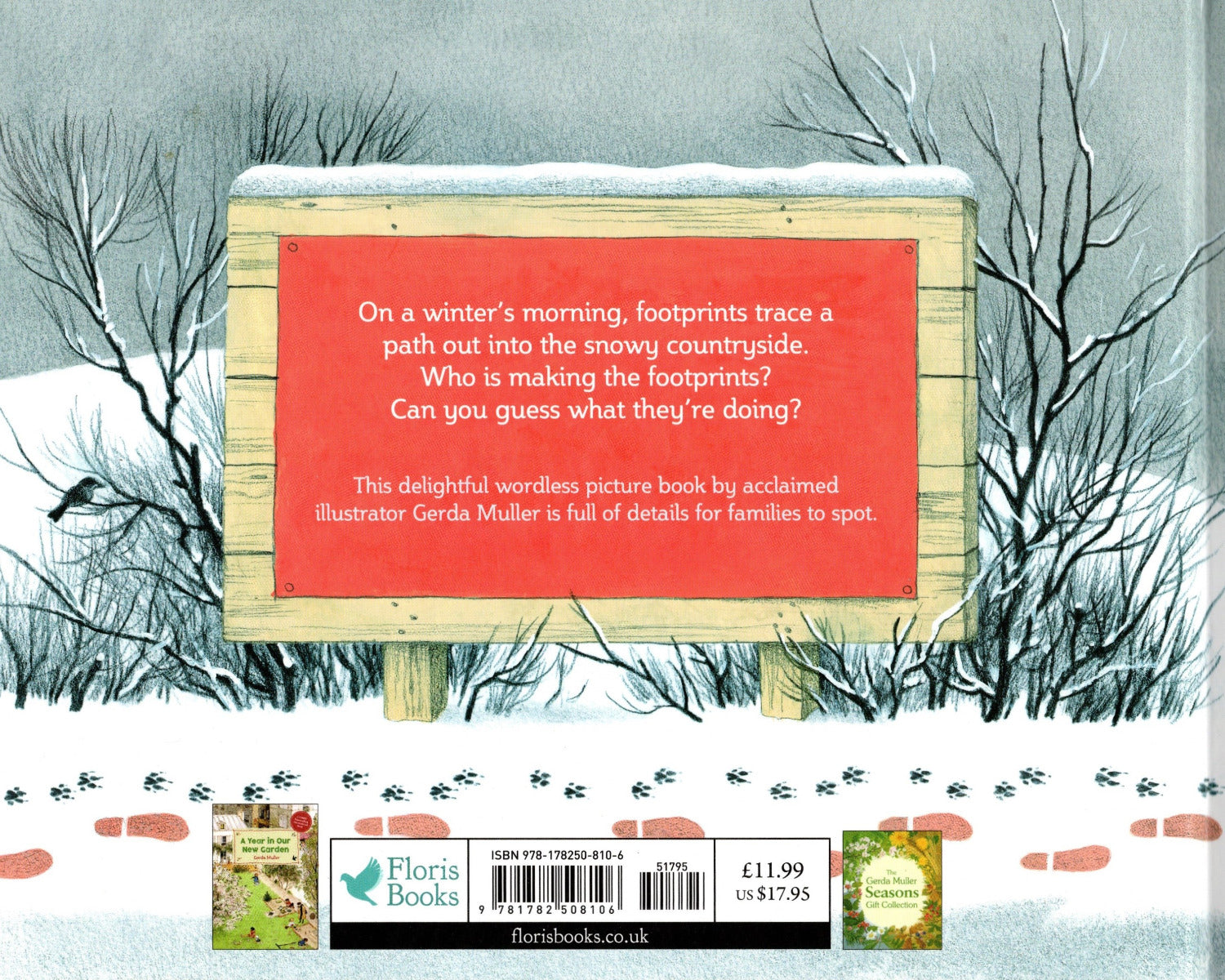 On a winter's morning, footprints trace a path out into the snowy countryside. Who is making the footprint? Can you guess what they're doing?