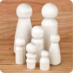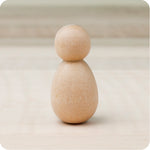 Simple and fun, wooden peg dolls stimulate creative play. Leave the wood natural, rub on some beeswax polish, or get creative with fabric scraps and markers. These peg people may need some light sanding for rough edges. Made in the USA. Peg people are small parts and may be unsuitable for children under 3 years old.