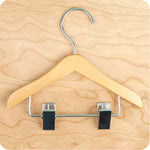 A real wooden clothes hanger - only doll clothes sized! 4 regular hangers and 2 clip hangers.