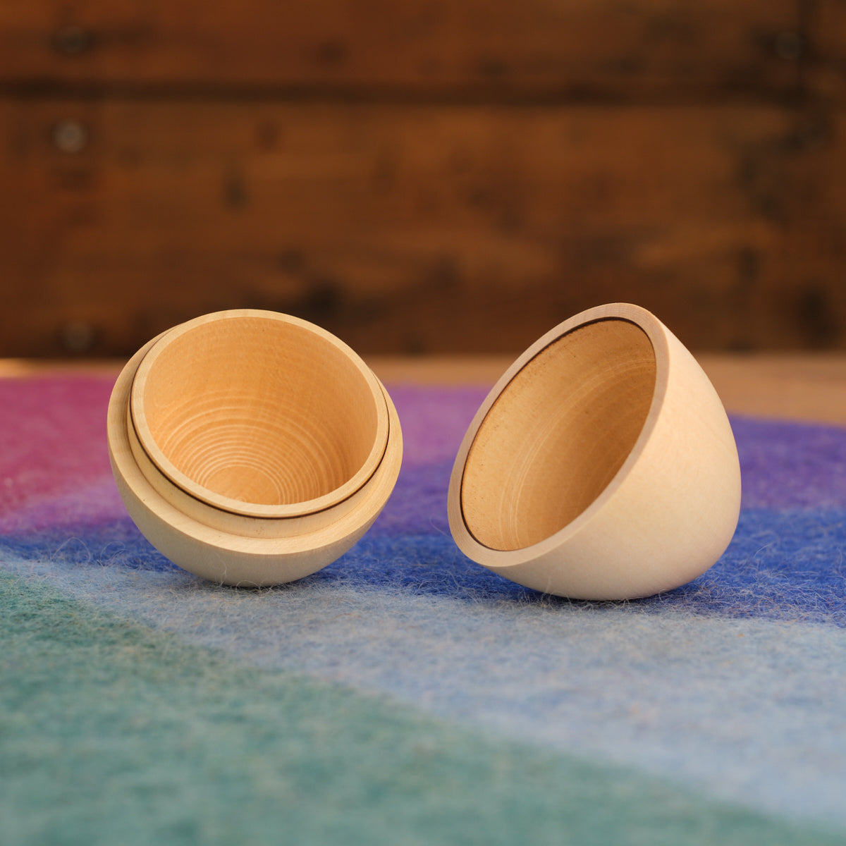 An adorable way to store little treats or trinkets. Just pull apart with your hands. A fun craft for adults and children--paint, polish with a natural wood finish, or leave plain.